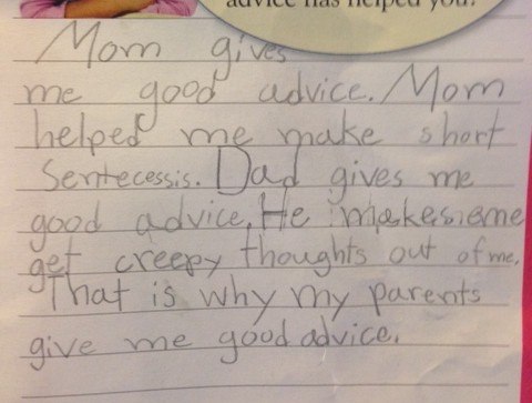 As for me, I helped Jesse make short sentences. Now I’m walking around thinking to myself, my daughter just told me I advised her to dumb it down. Put me on the list for mother of the year again.