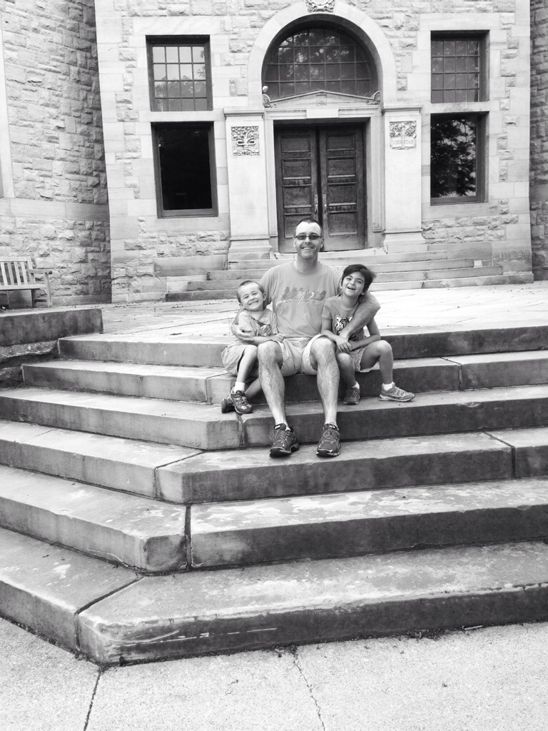 I was going to write tonight about our Oberlin stop-off and load up some photos, after the kids fell asleep in this hotel room somewhere in Pennsylvania. Maybe I’ll tell you all about it tomorrow, because Anthony and I pulled out our emergency bottle of quality bourbon instead and drank too much out of small plastic cups as we reminisced. It’s too late for Oberlin tales now; I spent my available time having a delightful, relaxing conversation with my mate. Also I’m loopy from the bourbon so I can’t do anything complicated right now.