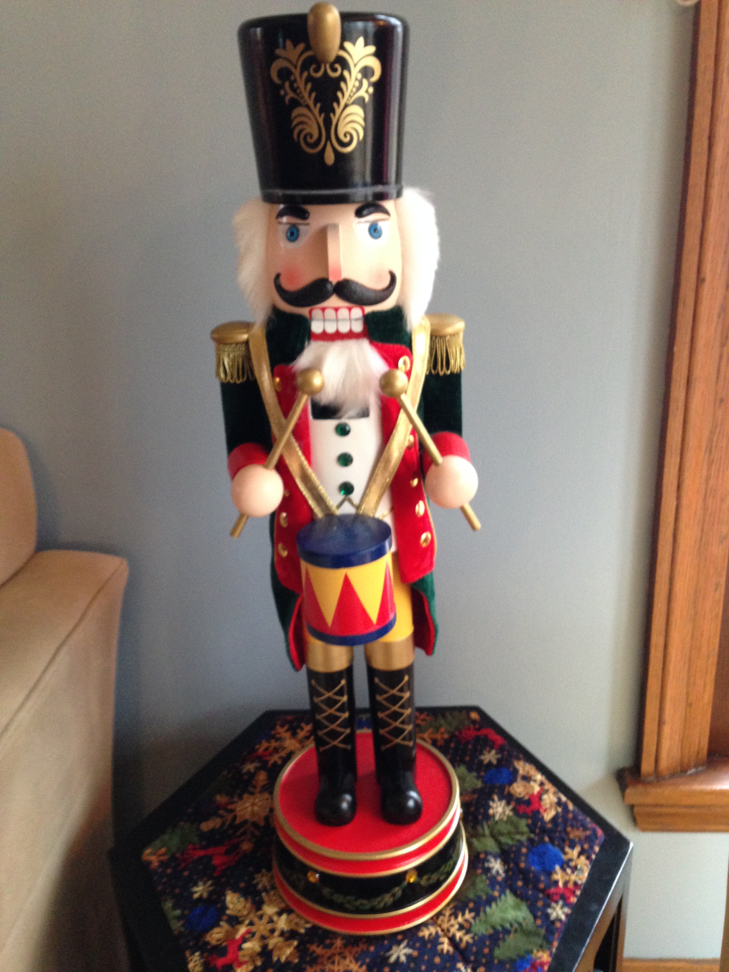 The giant nutcracker, who just today threatened to haunt Nick’s nightmares if Nick breaks him. (“What does ‘haunt nightmares’ mean, mommy?”)