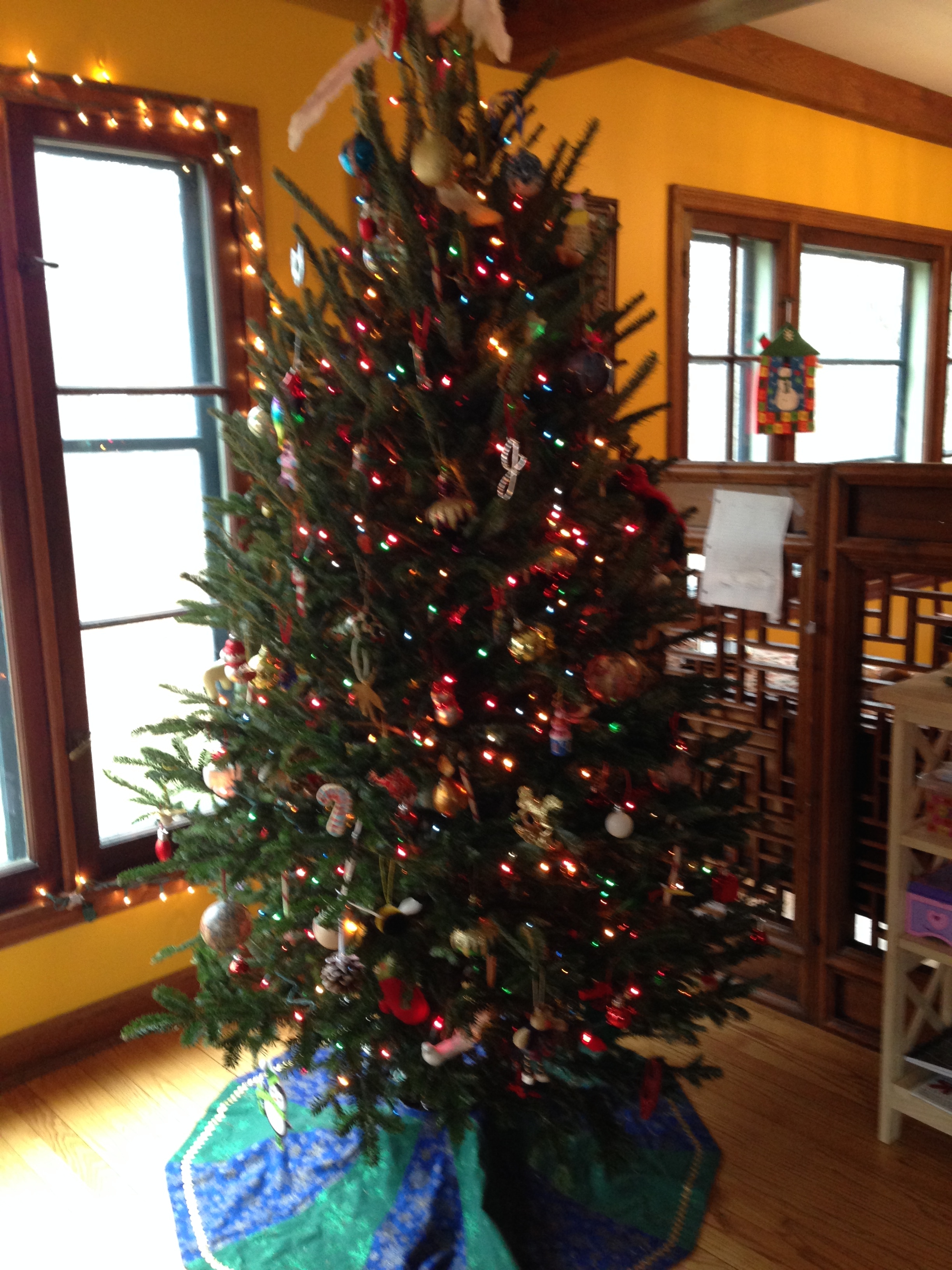 It’s quite lovely. I think it’s our prettiest tree ever. We say that every year, and every year it’s true. Oops, I messed up the picture. You can’t see the two peace doves hanging out on the top of the tree. This is why I usually post blogs with no pictures. It’s not something I’m good at.