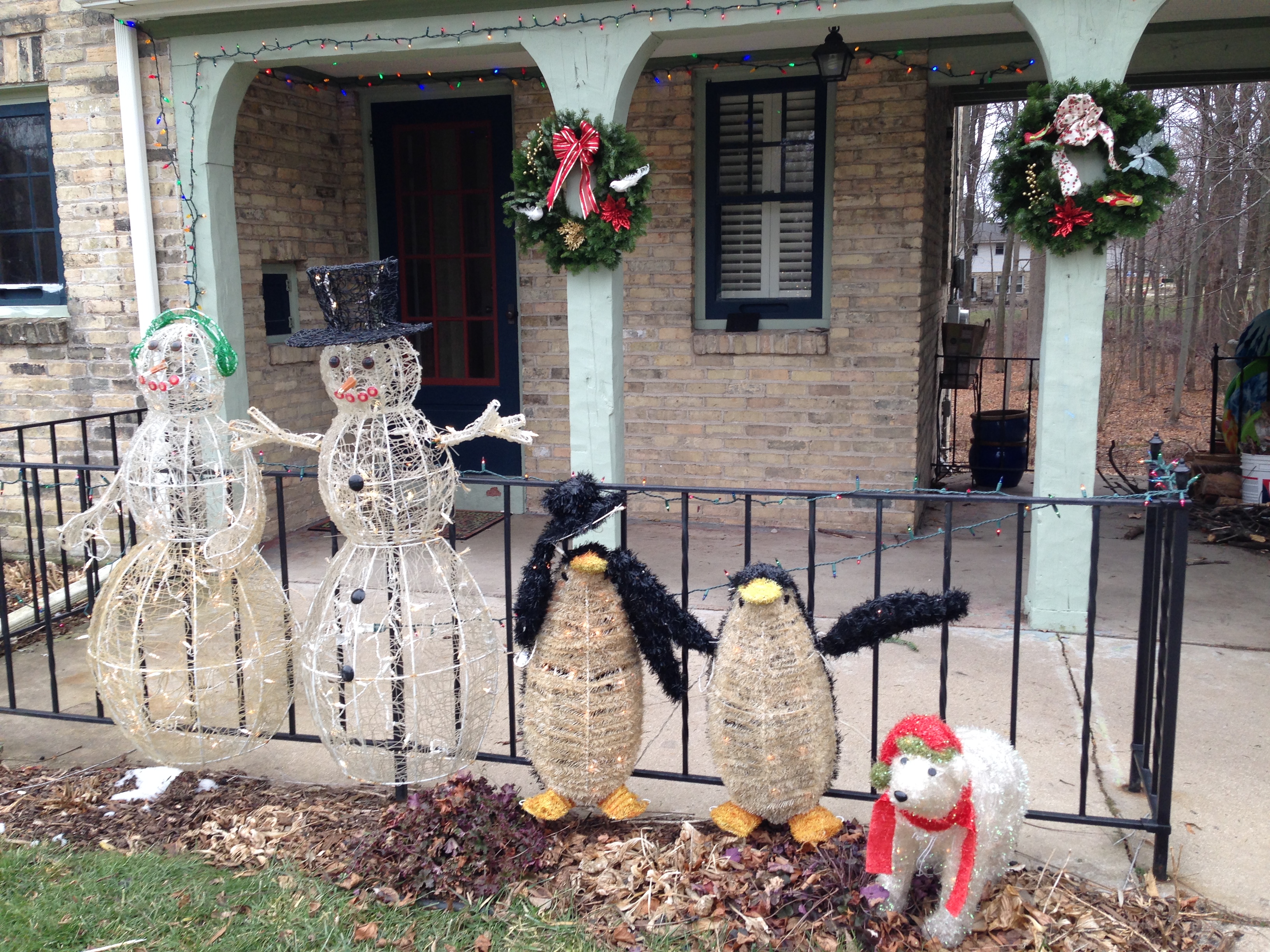 We did most of the outside yesterday. First we went to buy the Christmas tree and wreaths, and then while Anthony took the kids to swim lessons, I hauled out lights and outdoor decor. It was a miraculous year, in which all our creatures lit up without any effort, and we got everything electrically daisy-chained properly.