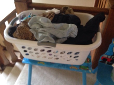 Jesse asked me to find her a pair of white socks this morning. I told her to go look in the laundry basket, which has 3 loads of unfolded, but clean, clothing stuffed in it. She looked at me and shrugged helplessly, so I went to stare at it myself.