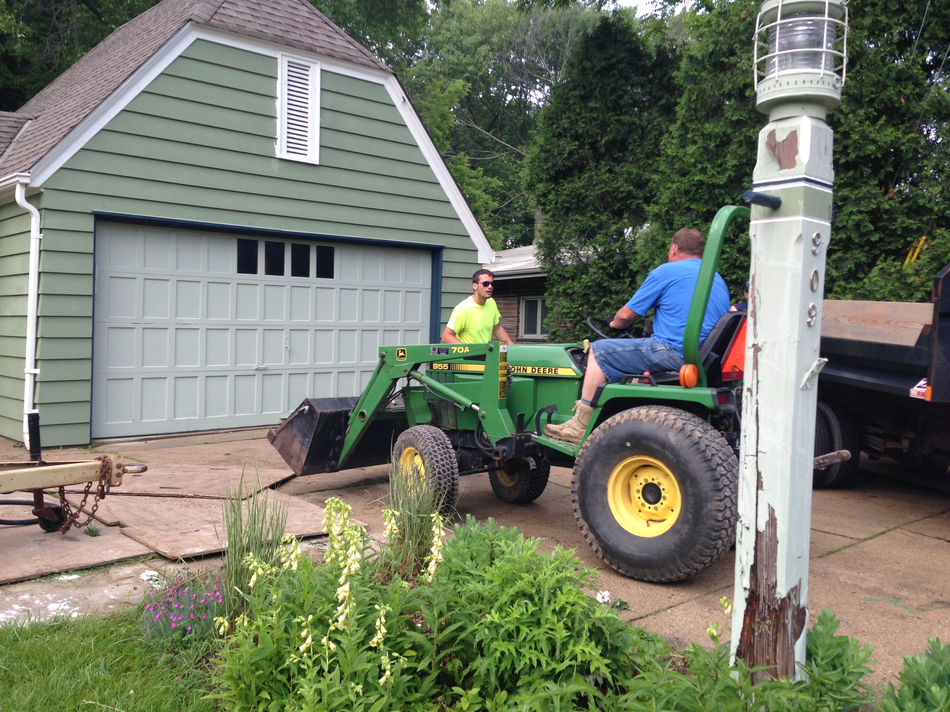 I wanted to give some of this equipment a go soooo bad. But I only got to watch. Here are a couple quick snaps I took from my kitchen window, which abuts the breezeway: