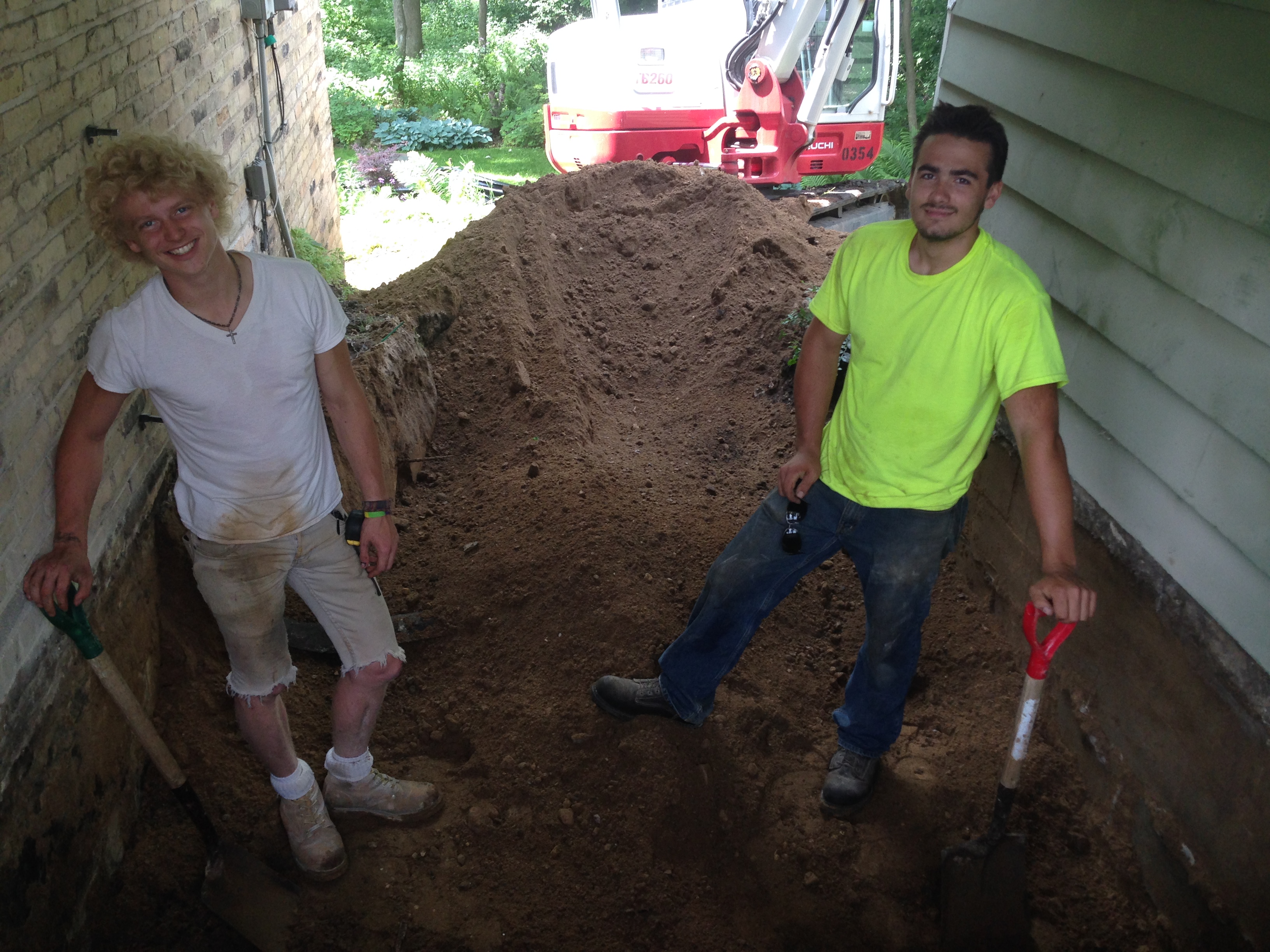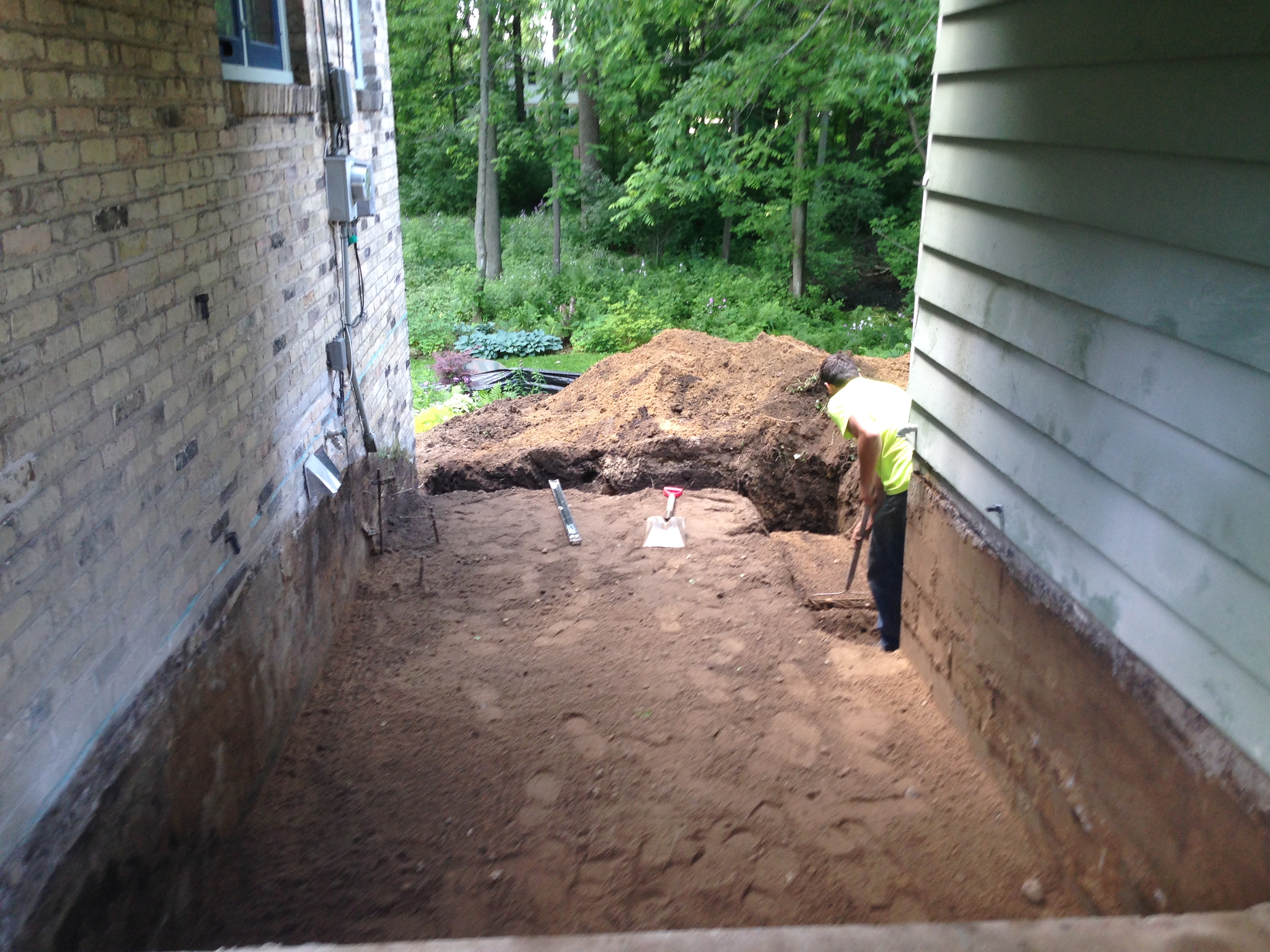 These guys were meticulous, clean, and fast, plus they had the right equipment. In the time it took me to carry 1600 pounds of flagstones away, this crew jackhammered and removed the concrete slab, dug down for the new foundation, and leveled the crawl space floor: