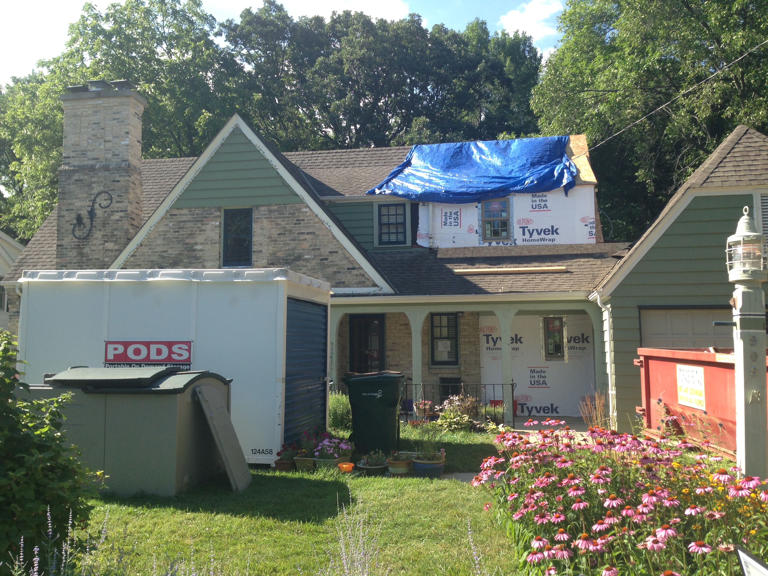 Last week of July: our electrician Mike installed a new circuit panel for 200 amp service, and then he called the city’s contracting inspection service to set up the “service rough” inspection, “OH to OH”, which I think means overhead-to-overhead in reference to the line coming into the house. This inspection had to happen before WE Energies could come move the line, so that then our roof could go on.
