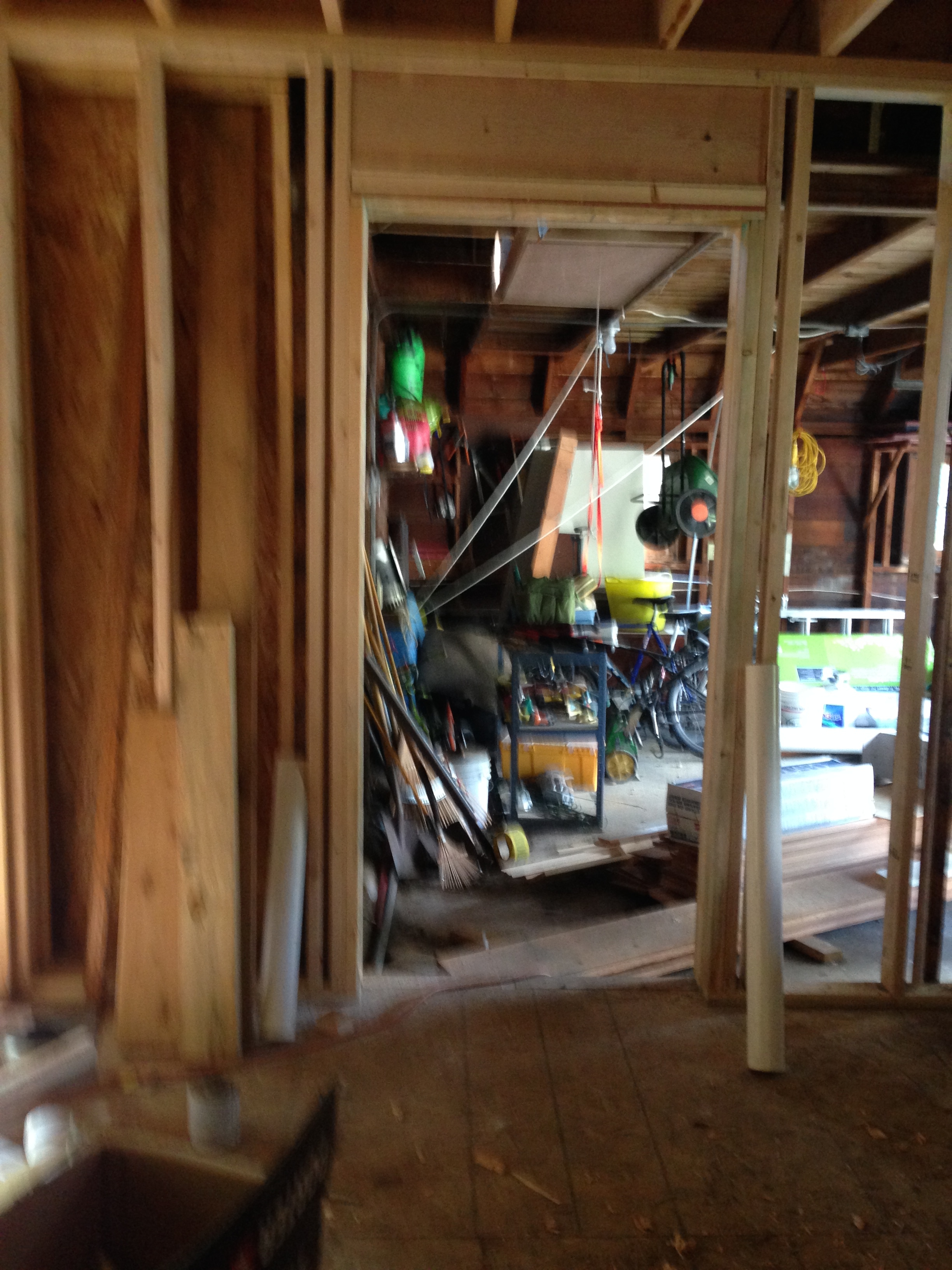 Yup. That’s the inside of the garage at the end of the view (past the still-boxed kitchen cabinets and the hollowed out future mudroom). Al fresco.