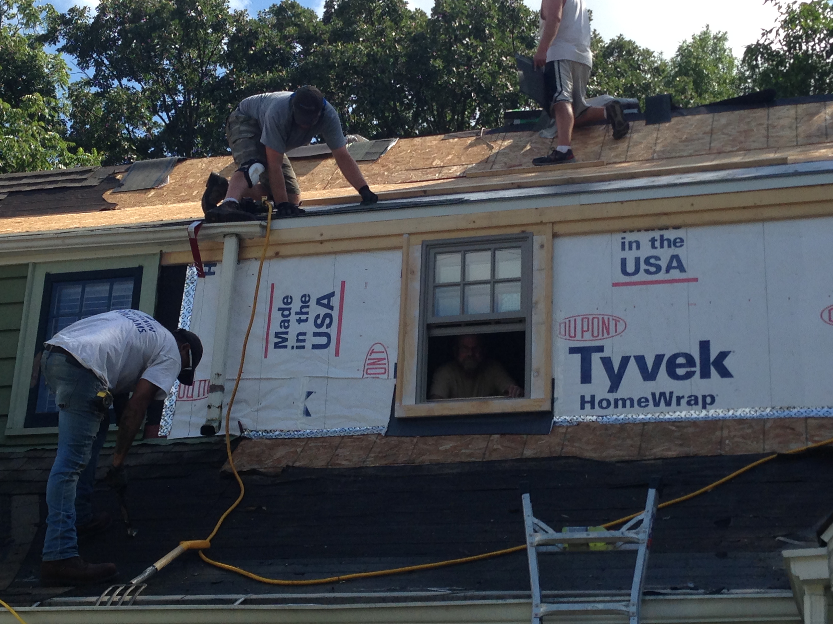 But we’re back on the map now. The plumber and carpenter are working again. The electrician should start soon. The roofing guys are apparently stuck in a scheduling nightmare (because they understandably moved on to other work while our job stalled out), so our trusty carpentry crew stepped in — the three musketeers. The three stooges? Los tres caballeros?