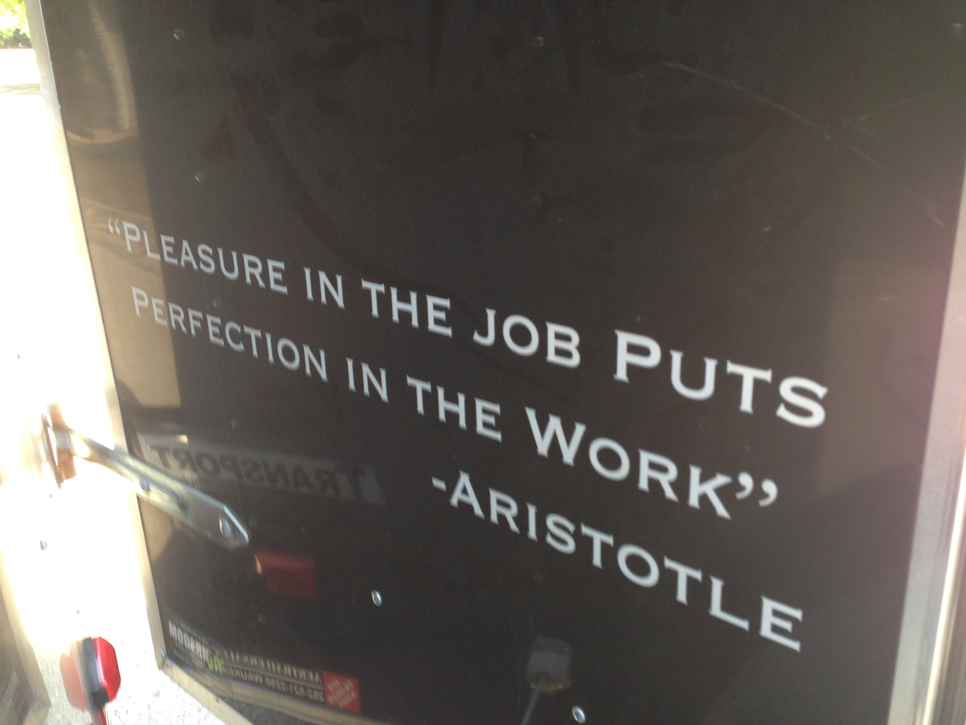 How can you not LOVE a contractor who quotes Aristotle on his truck?? ARISTOTLE, I tell you.