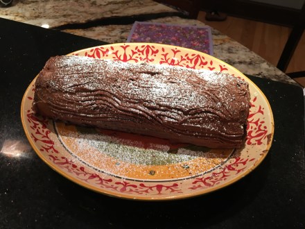 I made a Yule log. Why, you ask? Because cake, whipped cream, chocolate frosting.